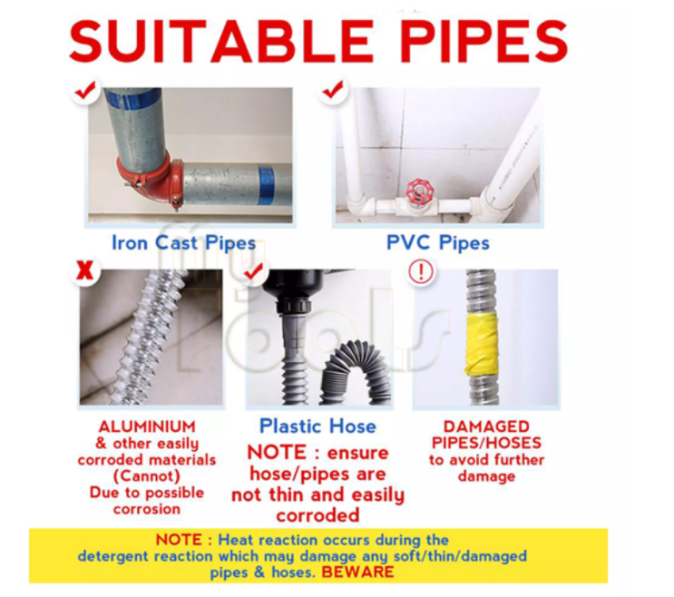 Still struggling with blocked sinks or slow draining pipes? Say goodbye to stubborn blockage & smelly pipes with Our Pipe Cleaning Powder!